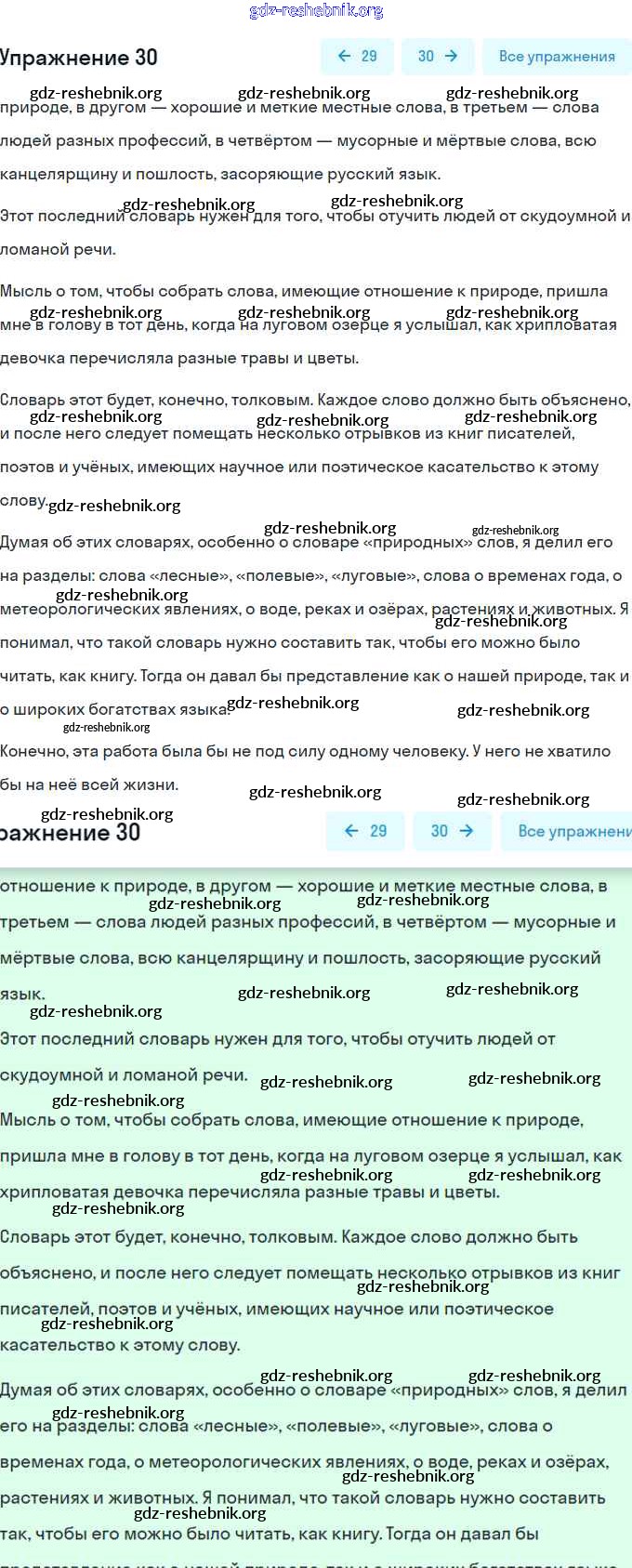 ГДЗ решебники Рабочая тетрадь по Русскому языку 6 класс Гостева УМК - Упражнения 30