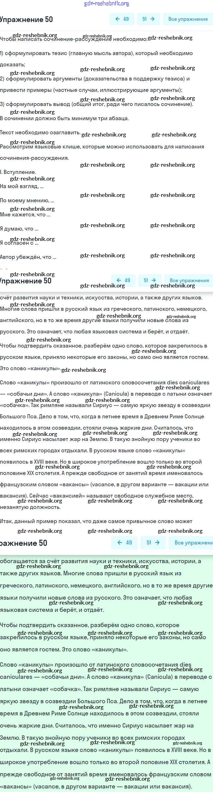 ГДЗ решебники Рабочая тетрадь по Русскому языку 6 класс Гостева УМК - Упражнения 50