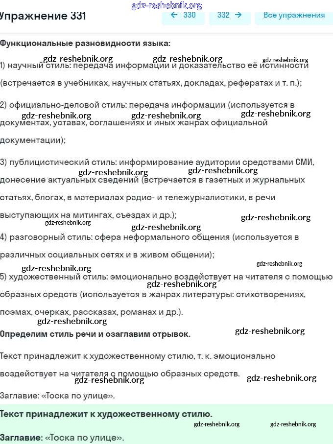gdz-reshebnik.org - сайт готовых домашних заданий и решебников для школьников по Русскому языку для шестого класса. Предоставляем готовые ответы на задания, авторские материалы к Учебнику Разумовская, Львова Вертикаль - Упражнения 331 . Основная часть контента представлена в бесплатном онлайн-формате с удобным и простым интерфейсом.
