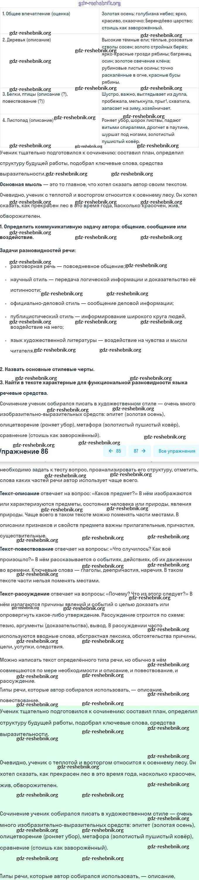 gdz-reshebnik.org - сайт готовых домашних заданий и решебников для школьников по Русскому языку для шестого класса. Предоставляем готовые ответы на задания, авторские материалы к Учебнику Разумовская, Львова Вертикаль - Упражнения 86 . Основная часть контента представлена в бесплатном онлайн-формате с удобным и простым интерфейсом.