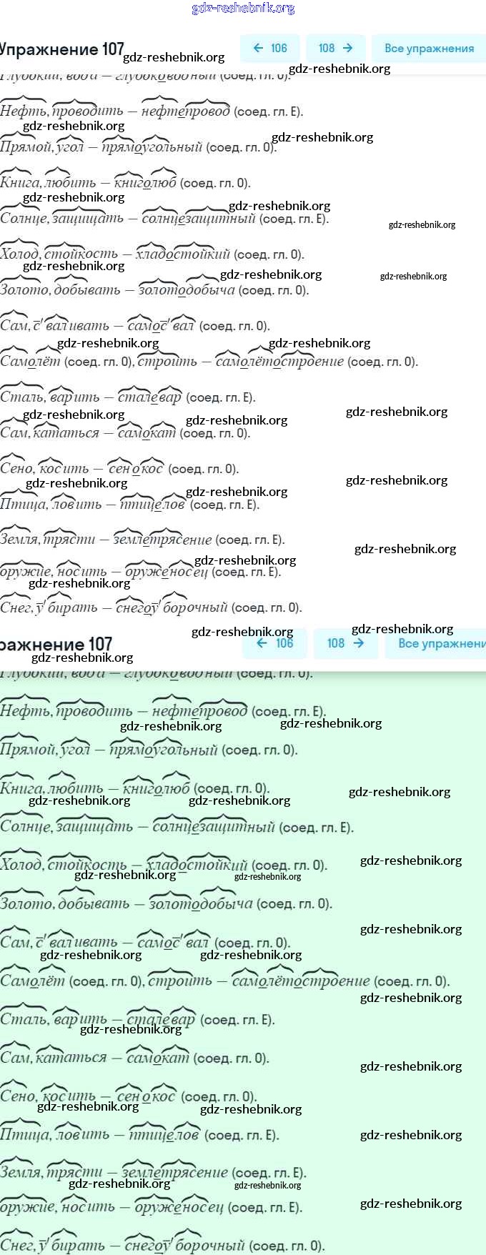 ГДЗ решебники Рабочая тетрадь по Русскому языку 6 класс Янченко, Латфуллина - Упражнения 107