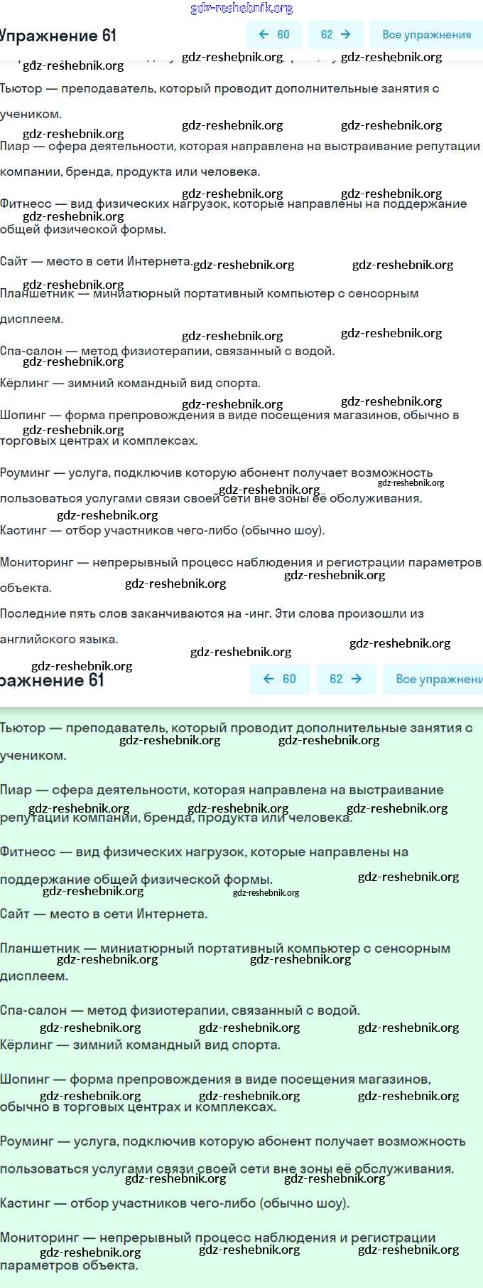 ГДЗ решебники Рабочая тетрадь по Русскому языку 6 класс Янченко, Латфуллина - Упражнения 61