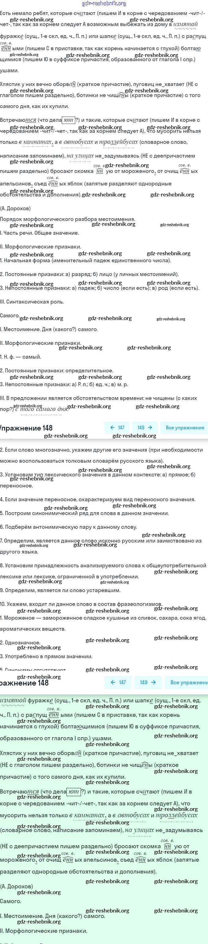 ГДЗ решебники Учебник по Русскому языку 7 класс Баранов, Ладыженская - Упражнения 148