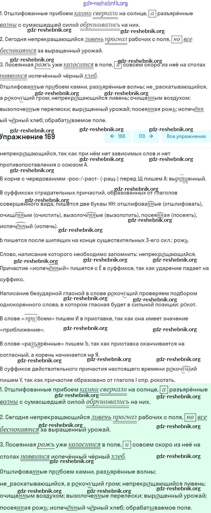 ГДЗ решебники Учебник по Русскому языку 7 класс Баранов, Ладыженская - Упражнения 169