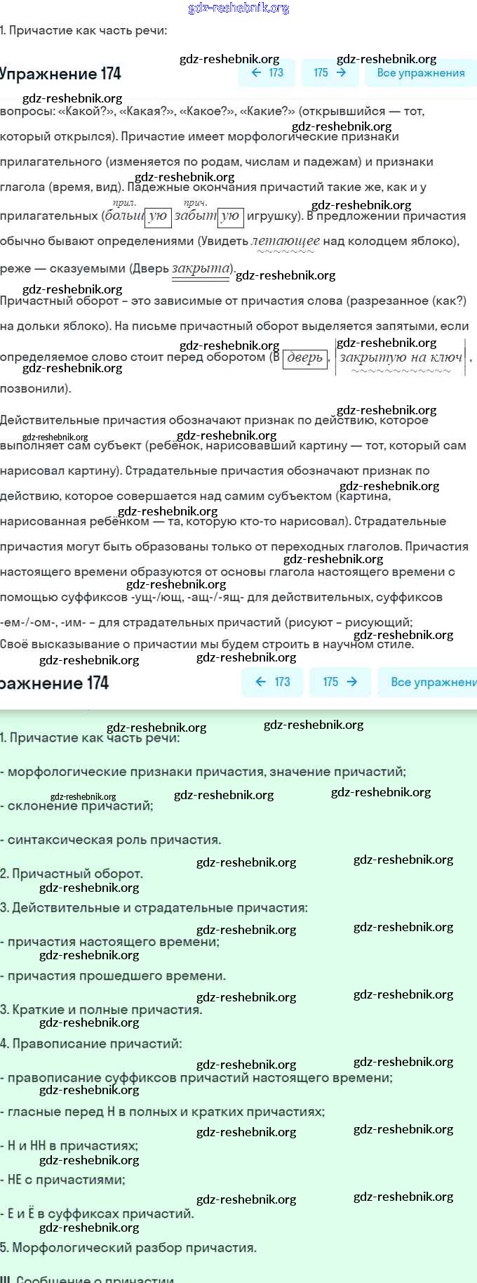 ГДЗ решебники Учебник по Русскому языку 7 класс Баранов, Ладыженская - Упражнения 174
