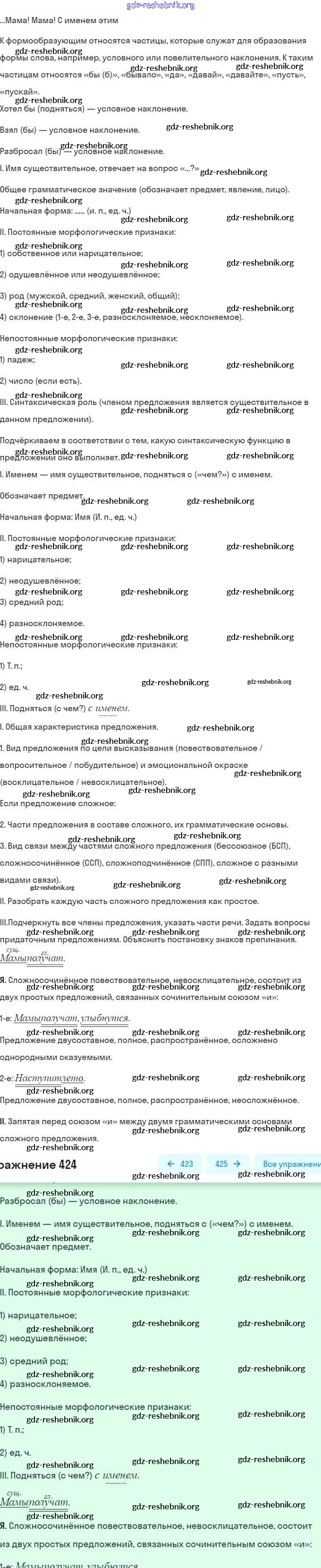ГДЗ решебники Учебник по Русскому языку 7 класс Баранов, Ладыженская - Упражнения 424