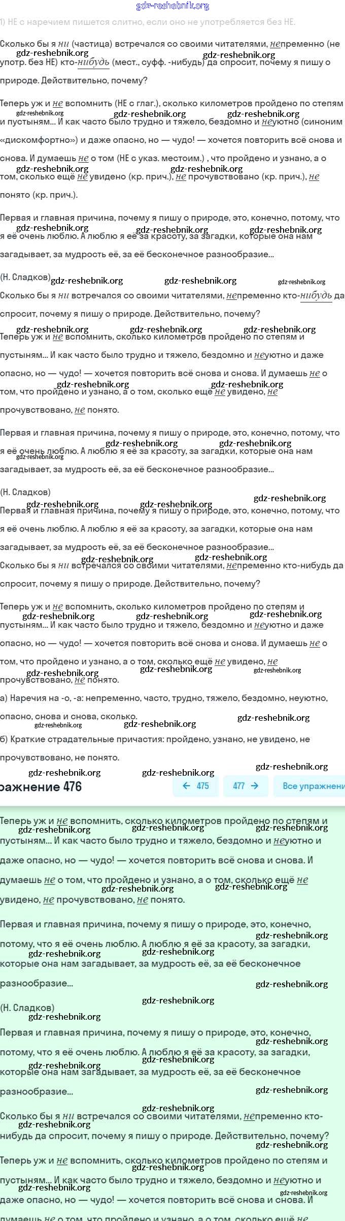 ГДЗ решебники Учебник по Русскому языку 7 класс Баранов, Ладыженская - Упражнения 476