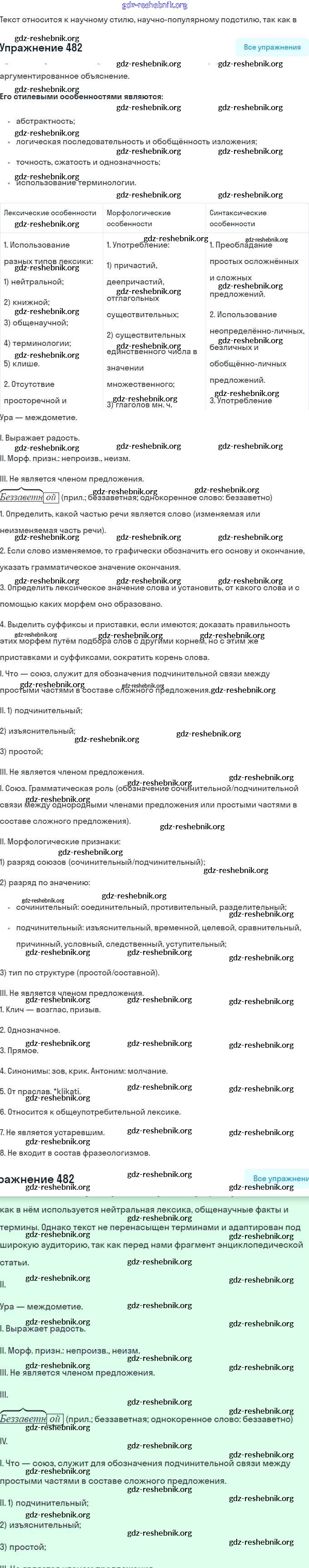 ГДЗ решебники Учебник по Русскому языку 7 класс Баранов, Ладыженская - Упражнения 482
