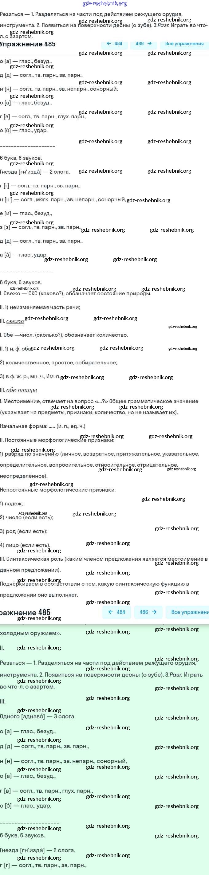 ГДЗ решебники Учебник по Русскому языку 7 класс Баранов, Ладыженская - Упражнения 485