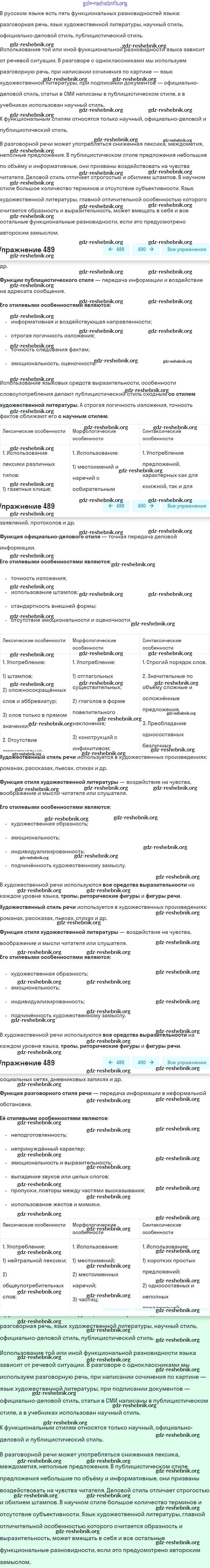 ГДЗ решебники Учебник по Русскому языку 7 класс Баранов, Ладыженская - Упражнения 489