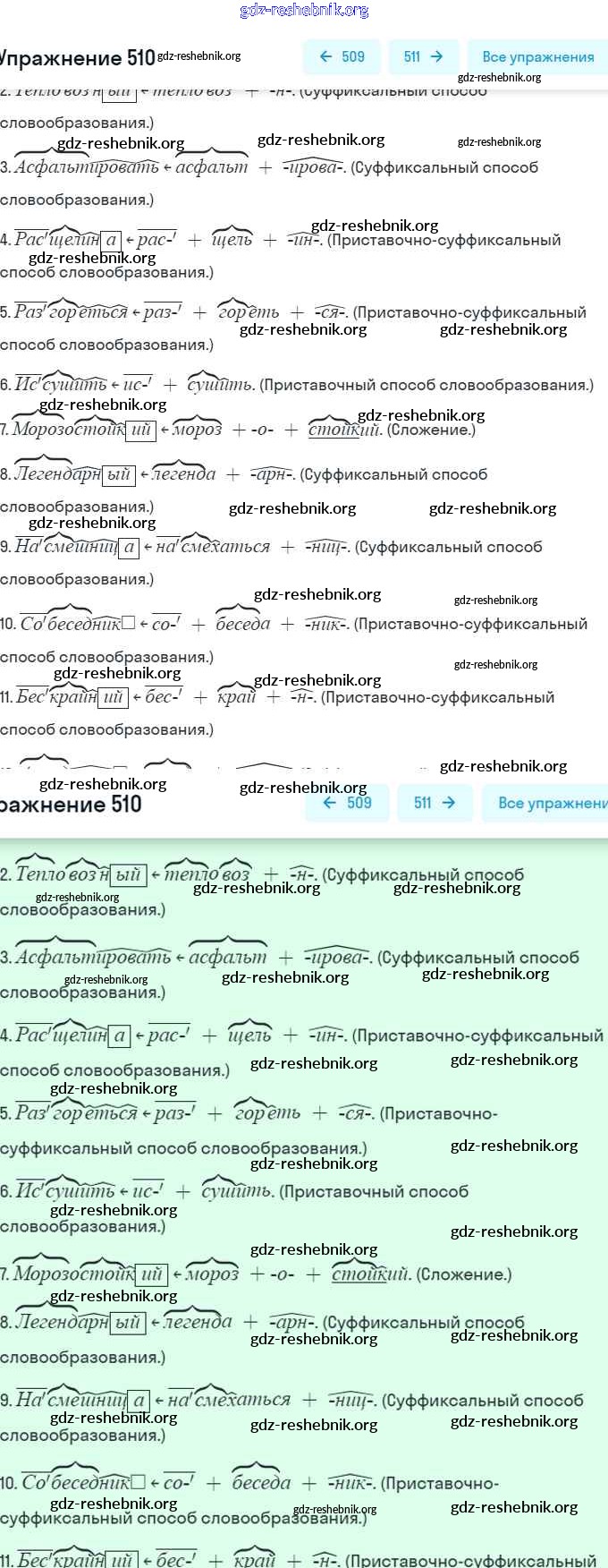 ГДЗ решебники Учебник по Русскому языку 7 класс Баранов, Ладыженская - Упражнения 510