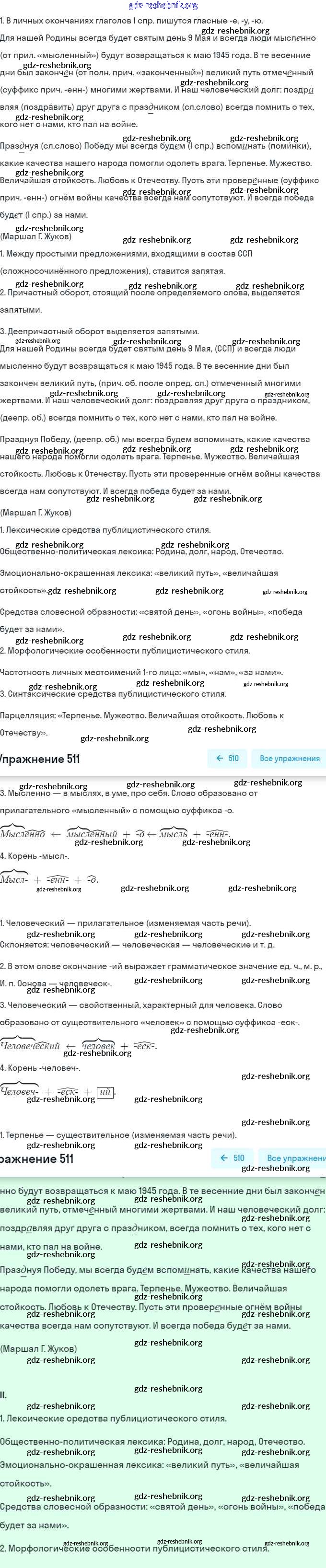 ГДЗ решебники Учебник по Русскому языку 7 класс Баранов, Ладыженская - Упражнения 511