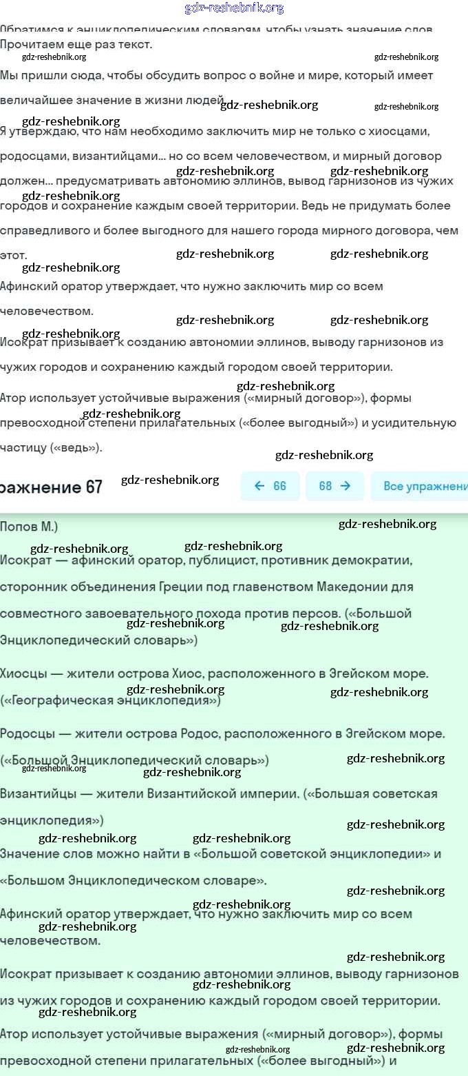ГДЗ решебники Учебник по Русскому языку 7 класс Баранов, Ладыженская - Упражнения 67
