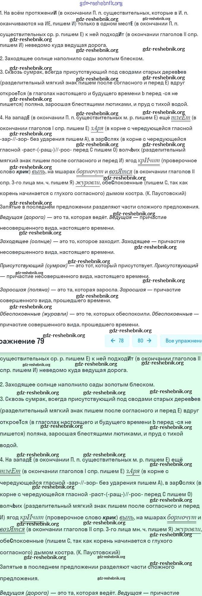 gdz-reshebnik.org - сайт готовых домашних заданий и решебников для школьников по Русскому языку для седьмого класса. Предоставляем готовые ответы на задания, авторские материалы к Учебнику Баранов, Ладыженская - Упражнения 79 . Основная часть контента представлена в бесплатном онлайн-формате с удобным и простым интерфейсом.