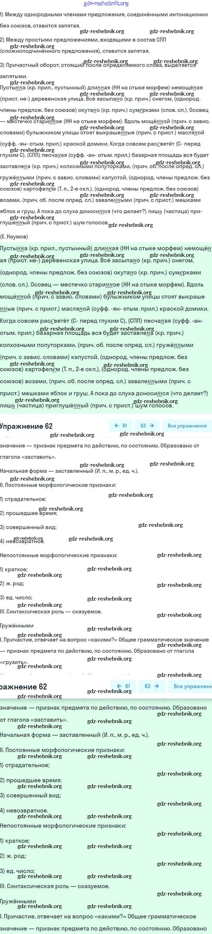 ГДЗ решебники Рабочая тетрадь по Русскому языку 7 класс Ефремова, Баранова УМК - Упражнения 62
