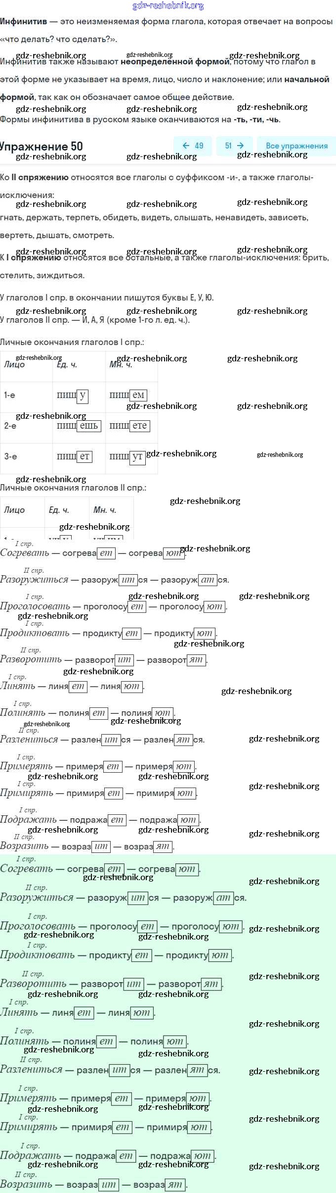 ГДЗ решебники Рабочая тетрадь по Русскому языку 7 класс Ларионова, Разумовская УМК - Задания 50