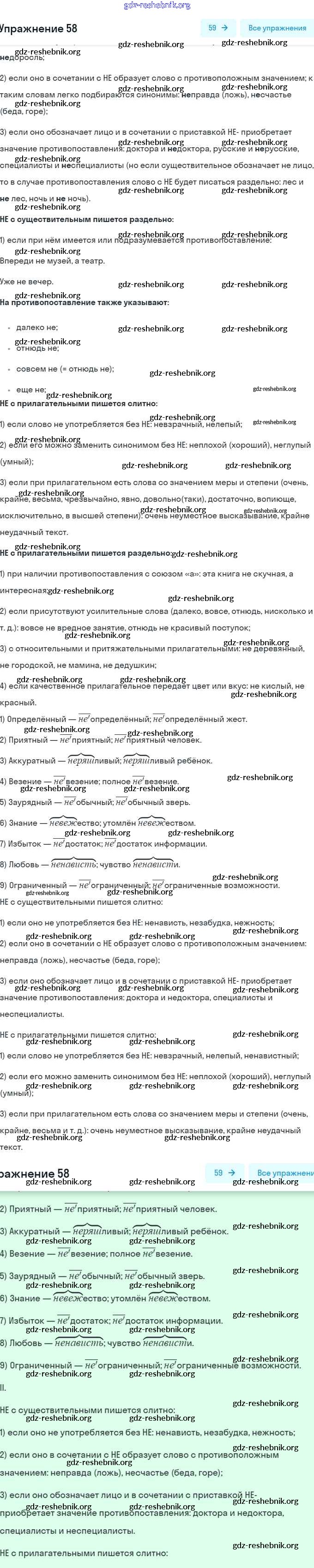 ГДЗ решебники Рабочая тетрадь по Русскому языку 7 класс Ларионова, Разумовская УМК - Задания 58