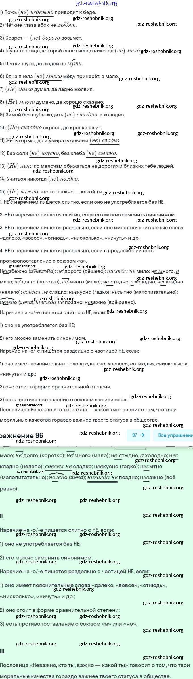 ГДЗ решебники Рабочая тетрадь по Русскому языку 7 класс Ларионова, Разумовская УМК - Задания 96