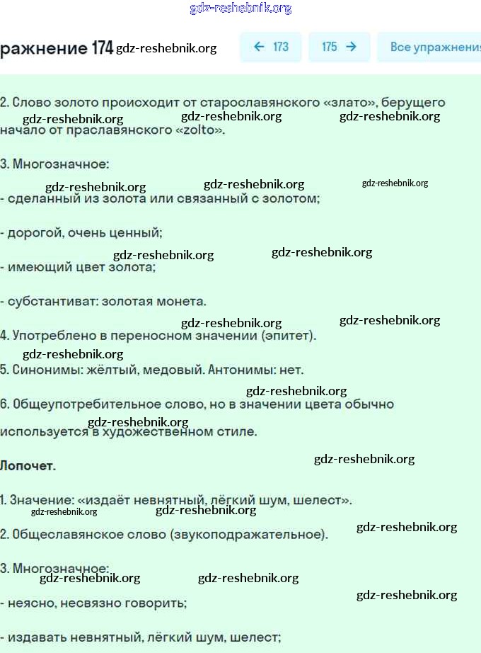 gdz-reshebnik.org - сайт готовых домашних заданий и решебников для школьников по Русскому языку для седьмого класса. Предоставляем готовые ответы на задания, авторские материалы к Учебнику Разумовская, Львова - Упражнения 174 . Основная часть контента представлена в бесплатном онлайн-формате с удобным и простым интерфейсом.