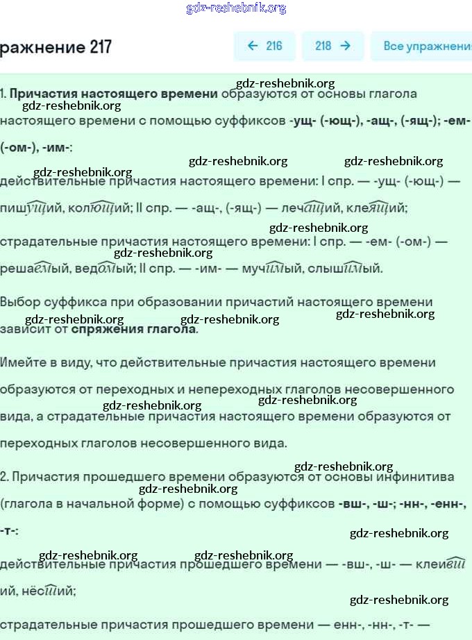 gdz-reshebnik.org - сайт готовых домашних заданий и решебников для школьников по Русскому языку для седьмого класса. Предоставляем готовые ответы на задания, авторские материалы к Учебнику Разумовская, Львова - Упражнения 217 . Основная часть контента представлена в бесплатном онлайн-формате с удобным и простым интерфейсом.