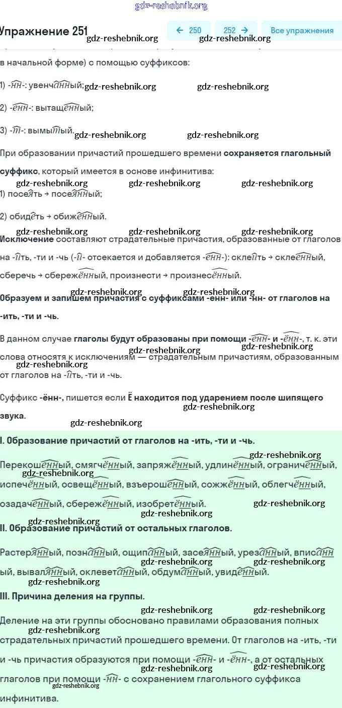 gdz-reshebnik.org - сайт готовых домашних заданий и решебников для школьников по Русскому языку для седьмого класса. Предоставляем готовые ответы на задания, авторские материалы к Учебнику Разумовская, Львова - Упражнения 251 . Основная часть контента представлена в бесплатном онлайн-формате с удобным и простым интерфейсом.