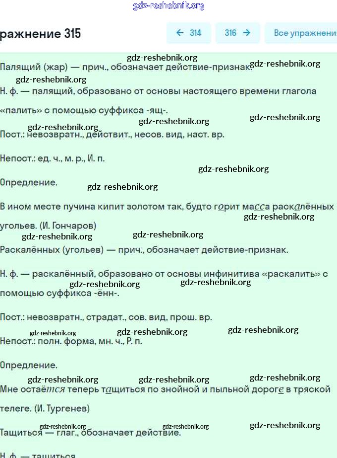 gdz-reshebnik.org - сайт готовых домашних заданий и решебников для школьников по Русскому языку для седьмого класса. Предоставляем готовые ответы на задания, авторские материалы к Учебнику Разумовская, Львова - Упражнения 315 . Основная часть контента представлена в бесплатном онлайн-формате с удобным и простым интерфейсом.