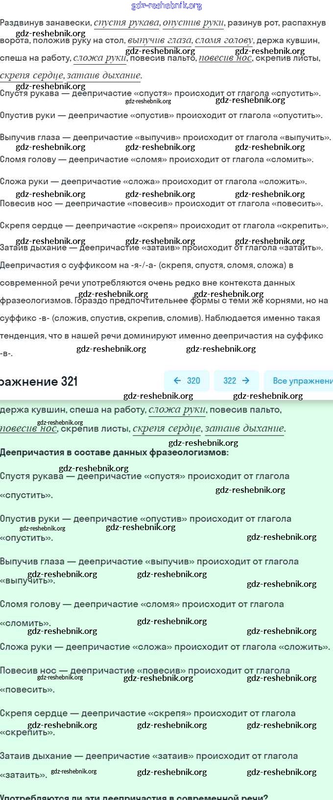 gdz-reshebnik.org - сайт готовых домашних заданий и решебников для школьников по Русскому языку для седьмого класса. Предоставляем готовые ответы на задания, авторские материалы к Учебнику Разумовская, Львова - Упражнения 321 . Основная часть контента представлена в бесплатном онлайн-формате с удобным и простым интерфейсом.