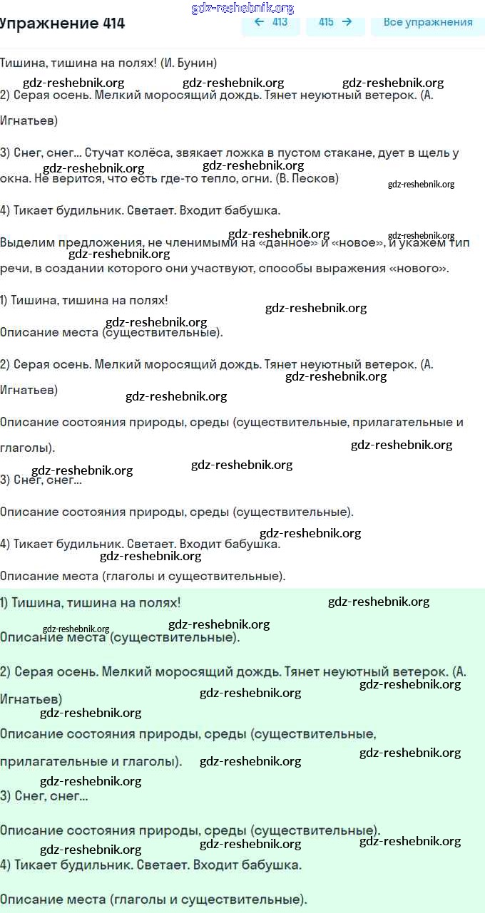 gdz-reshebnik.org - сайт готовых домашних заданий и решебников для школьников по Русскому языку для седьмого класса. Предоставляем готовые ответы на задания, авторские материалы к Учебнику Разумовская, Львова - Упражнения 414 . Основная часть контента представлена в бесплатном онлайн-формате с удобным и простым интерфейсом.