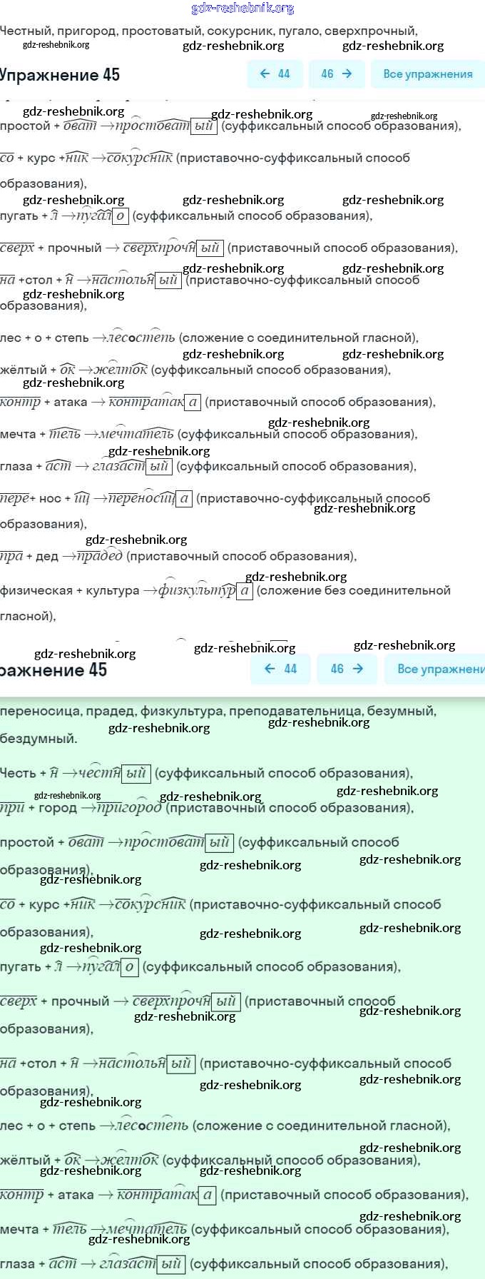 gdz-reshebnik.org - сайт готовых домашних заданий и решебников для школьников по Русскому языку для седьмого класса. Предоставляем готовые ответы на задания, авторские материалы к Учебнику Разумовская, Львова - Упражнения 45 . Основная часть контента представлена в бесплатном онлайн-формате с удобным и простым интерфейсом.
