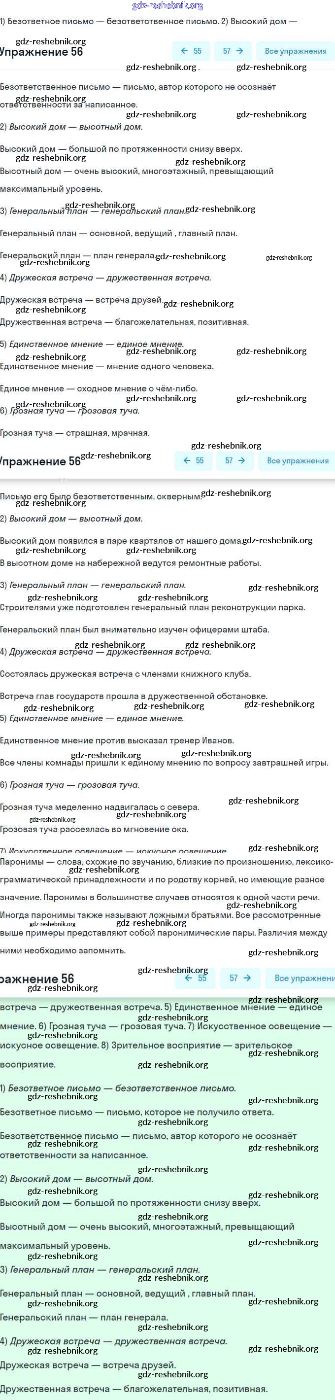 gdz-reshebnik.org - сайт готовых домашних заданий и решебников для школьников по Русскому языку для седьмого класса. Предоставляем готовые ответы на задания, авторские материалы к Учебнику Разумовская, Львова - Упражнения 56 . Основная часть контента представлена в бесплатном онлайн-формате с удобным и простым интерфейсом.