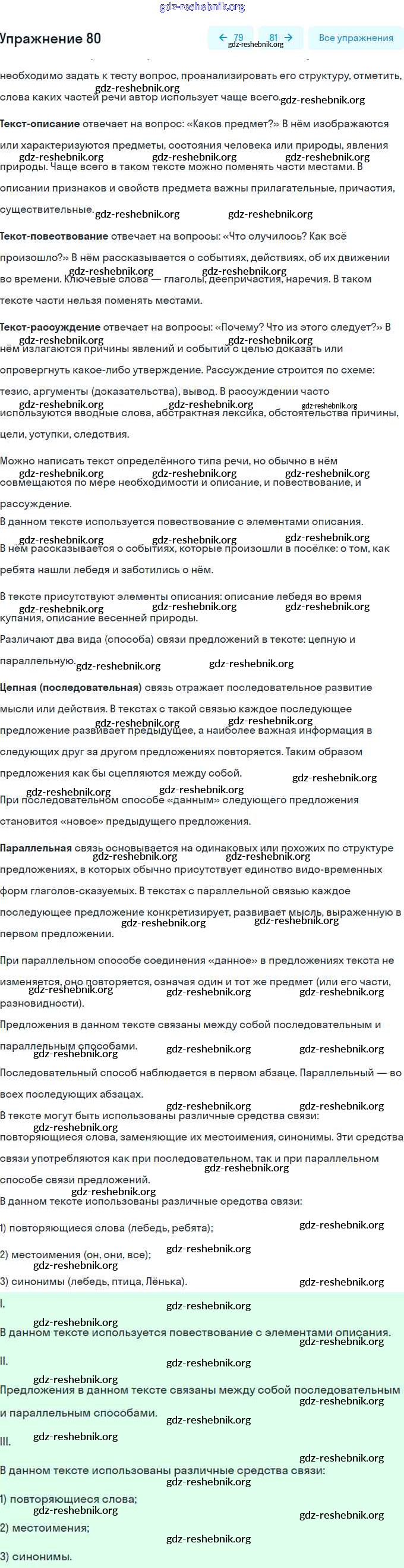 gdz-reshebnik.org - сайт готовых домашних заданий и решебников для школьников по Русскому языку для седьмого класса. Предоставляем готовые ответы на задания, авторские материалы к Учебнику Разумовская, Львова - Упражнения 80 . Основная часть контента представлена в бесплатном онлайн-формате с удобным и простым интерфейсом.