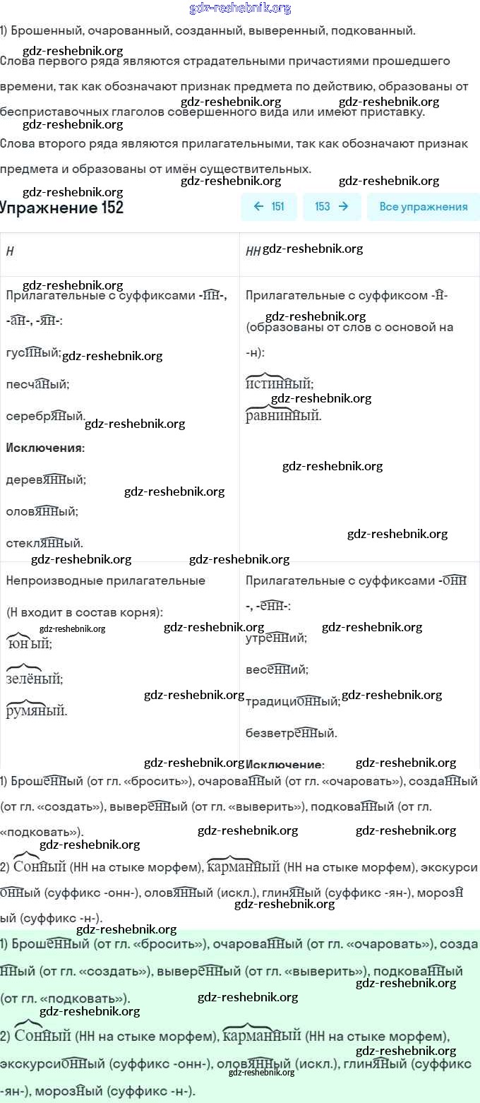 ГДЗ решебники Учебник по Русскому языку 7 класс Рыбченкова, Александрова - Упражнения 152