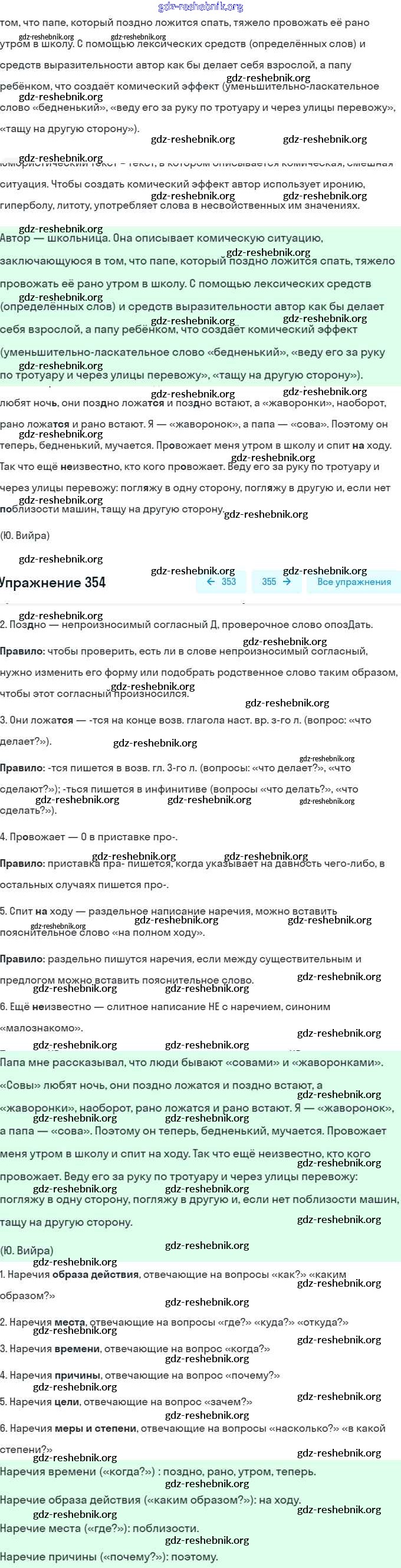 ГДЗ решебники Учебник по Русскому языку 7 класс Рыбченкова, Александрова - Упражнения 354