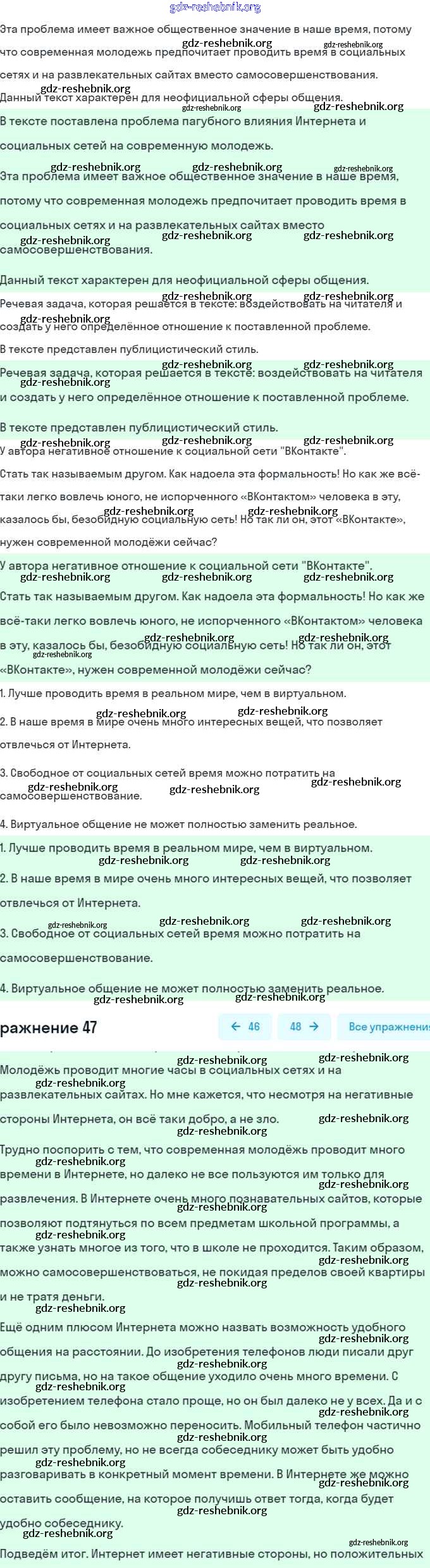 ГДЗ решебники Учебник по Русскому языку 7 класс Рыбченкова, Александрова - Упражнения 47