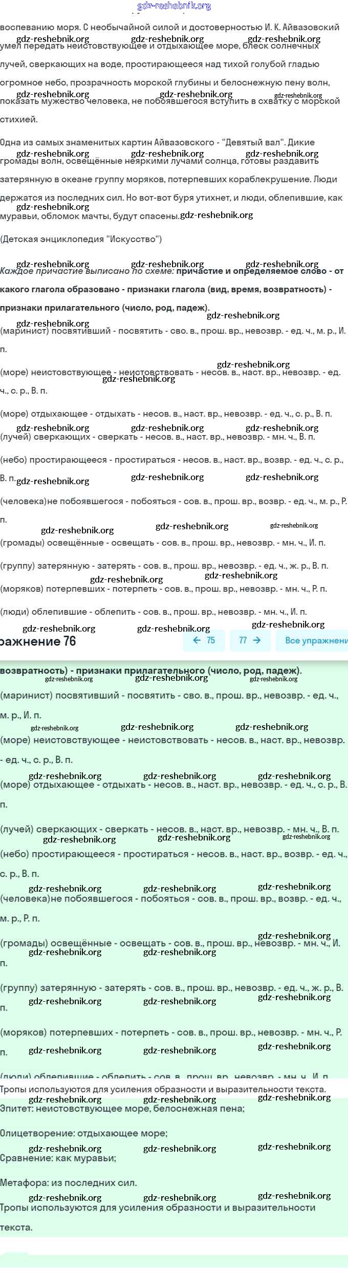 gdz-reshebnik.org - сайт готовых домашних заданий и решебников для школьников по Русскому языку для седьмого класса. Предоставляем готовые ответы на задания, авторские материалы к Учебнику Рыбченкова, Александрова - Упражнения 76 . Основная часть контента представлена в бесплатном онлайн-формате с удобным и простым интерфейсом.