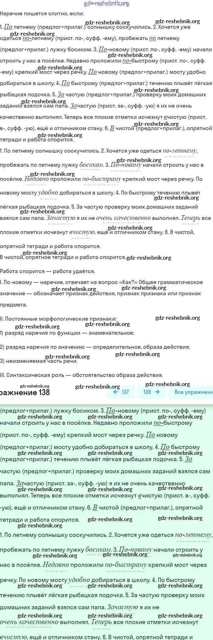 ГДЗ решебники Рабочая тетрадь по Русскому языку 7 класс Янченко, Латфуллина Часть 1, 2 - Упражнения 138