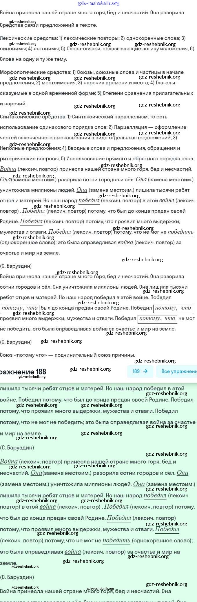 ГДЗ решебники Рабочая тетрадь по Русскому языку 7 класс Янченко, Латфуллина Часть 1, 2 - Упражнения 188