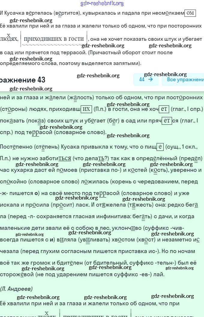 ГДЗ решебники Рабочая тетрадь по Русскому языку 7 класс Янченко, Латфуллина Часть 1, 2 - Упражнения 43