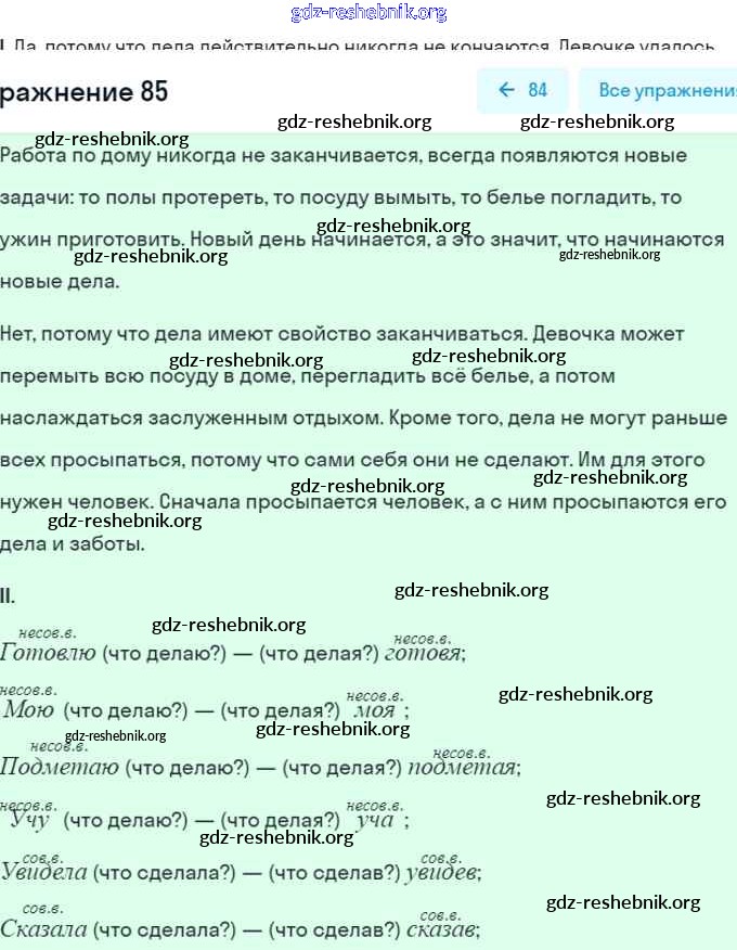 gdz-reshebnik.org - сайт готовых домашних заданий и решебников для школьников по Русскому языку для седьмого класса. Предоставляем готовые ответы на задания, авторские материалы к Рабочей тетради Янченко, Латфуллина Часть 1, 2 - Упражнения 85 . Основная часть контента представлена в бесплатном онлайн-формате с удобным и простым интерфейсом.