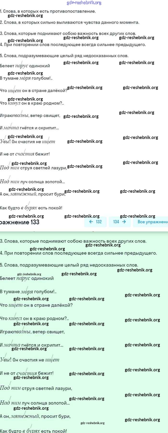 gdz-reshebnik.org - сайт готовых домашних заданий и решебников для школьников по Русскому языку для восьмого класса. Предоставляем готовые ответы на задания, авторские материалы к Учебнику Бархударов, Крючков - Упражнения 133 . Основная часть контента представлена в бесплатном онлайн-формате с удобным и простым интерфейсом.