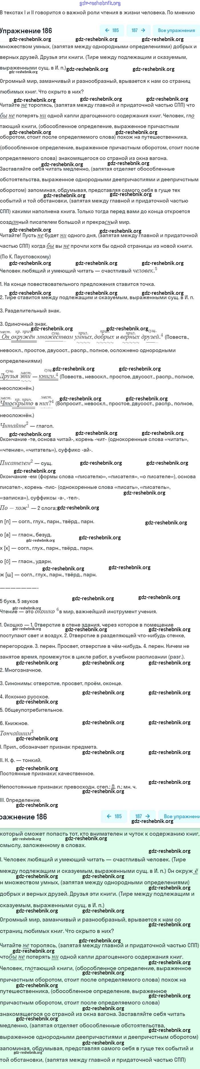 gdz-reshebnik.org - сайт готовых домашних заданий и решебников для школьников по Русскому языку для восьмого класса. Предоставляем готовые ответы на задания, авторские материалы к Учебнику Бархударов, Крючков - Упражнения 186 . Основная часть контента представлена в бесплатном онлайн-формате с удобным и простым интерфейсом.