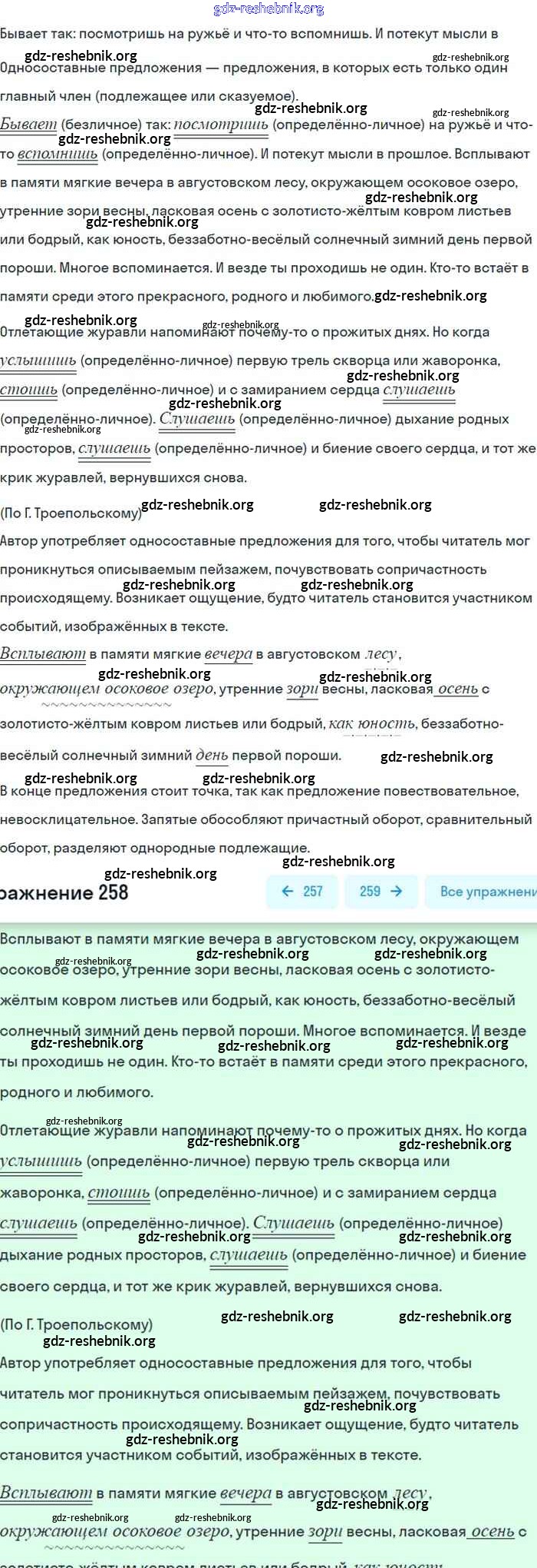 gdz-reshebnik.org - сайт готовых домашних заданий и решебников для школьников по Русскому языку для восьмого класса. Предоставляем готовые ответы на задания, авторские материалы к Учебнику Бархударов, Крючков - Упражнения 258 . Основная часть контента представлена в бесплатном онлайн-формате с удобным и простым интерфейсом.