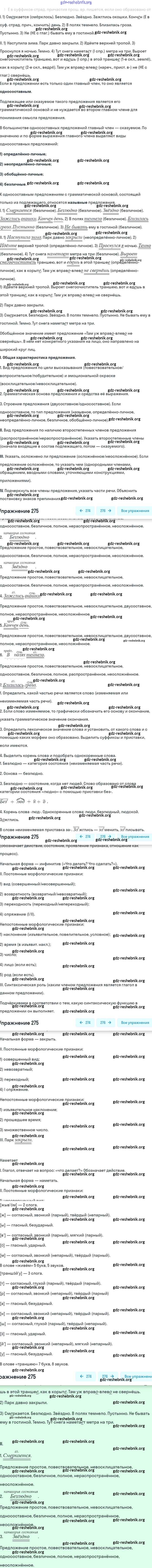 ГДЗ решебники Учебник по Русскому языку 8 класс Бархударов, Крючков - Упражнения 275