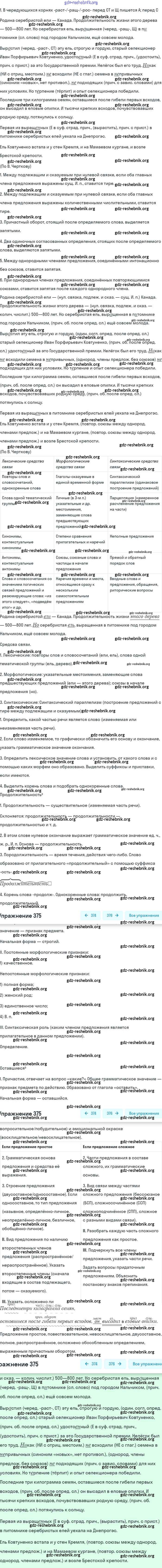 gdz-reshebnik.org - сайт готовых домашних заданий и решебников для школьников по Русскому языку для восьмого класса. Предоставляем готовые ответы на задания, авторские материалы к Учебнику Бархударов, Крючков - Упражнения 375 . Основная часть контента представлена в бесплатном онлайн-формате с удобным и простым интерфейсом.