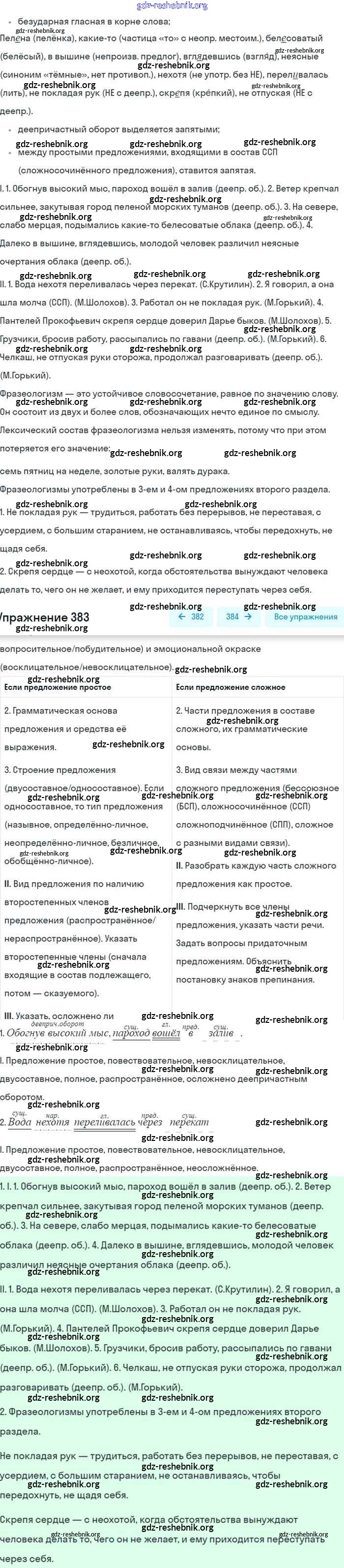 gdz-reshebnik.org - сайт готовых домашних заданий и решебников для школьников по Русскому языку для восьмого класса. Предоставляем готовые ответы на задания, авторские материалы к Учебнику Бархударов, Крючков - Упражнения 383 . Основная часть контента представлена в бесплатном онлайн-формате с удобным и простым интерфейсом.