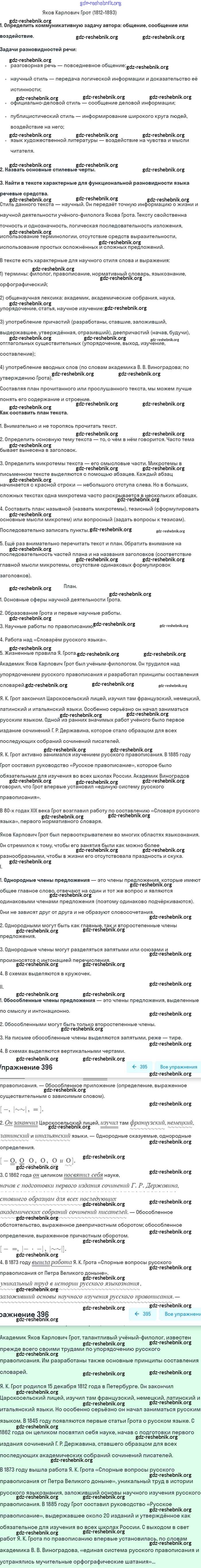 gdz-reshebnik.org - сайт готовых домашних заданий и решебников для школьников по Русскому языку для восьмого класса. Предоставляем готовые ответы на задания, авторские материалы к Учебнику Бархударов, Крючков - Упражнения 396 . Основная часть контента представлена в бесплатном онлайн-формате с удобным и простым интерфейсом.