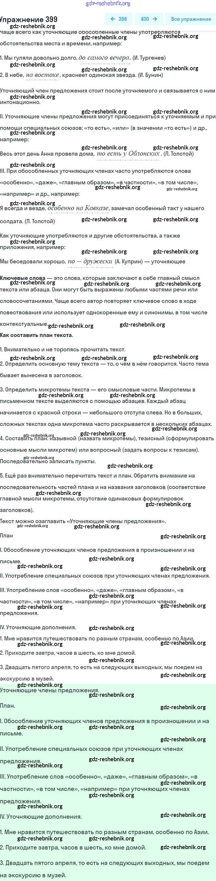 gdz-reshebnik.org - сайт готовых домашних заданий и решебников для школьников по Русскому языку для восьмого класса. Предоставляем готовые ответы на задания, авторские материалы к Учебнику Бархударов, Крючков - Упражнения 399 . Основная часть контента представлена в бесплатном онлайн-формате с удобным и простым интерфейсом.