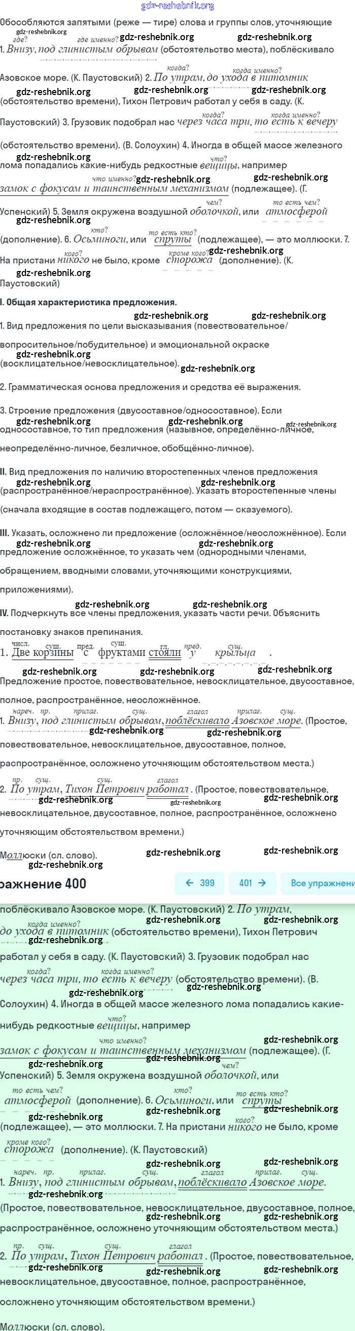 ГДЗ решебники Учебник по Русскому языку 8 класс Бархударов, Крючков - Упражнения 400