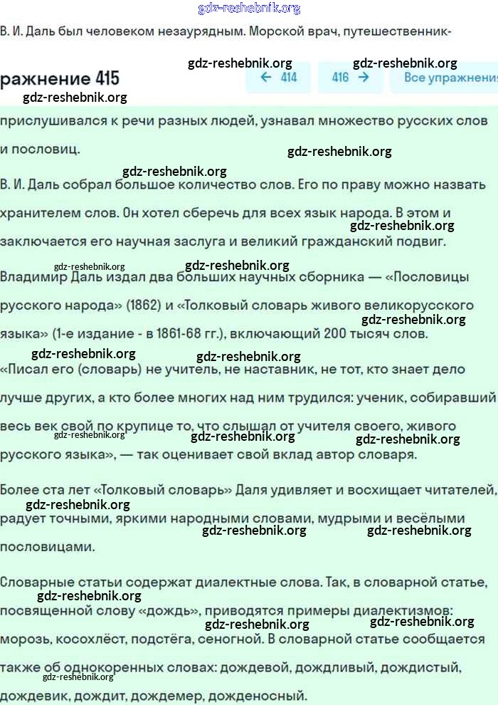 ГДЗ решебники Учебник по Русскому языку 8 класс Бархударов, Крючков - Упражнения 415