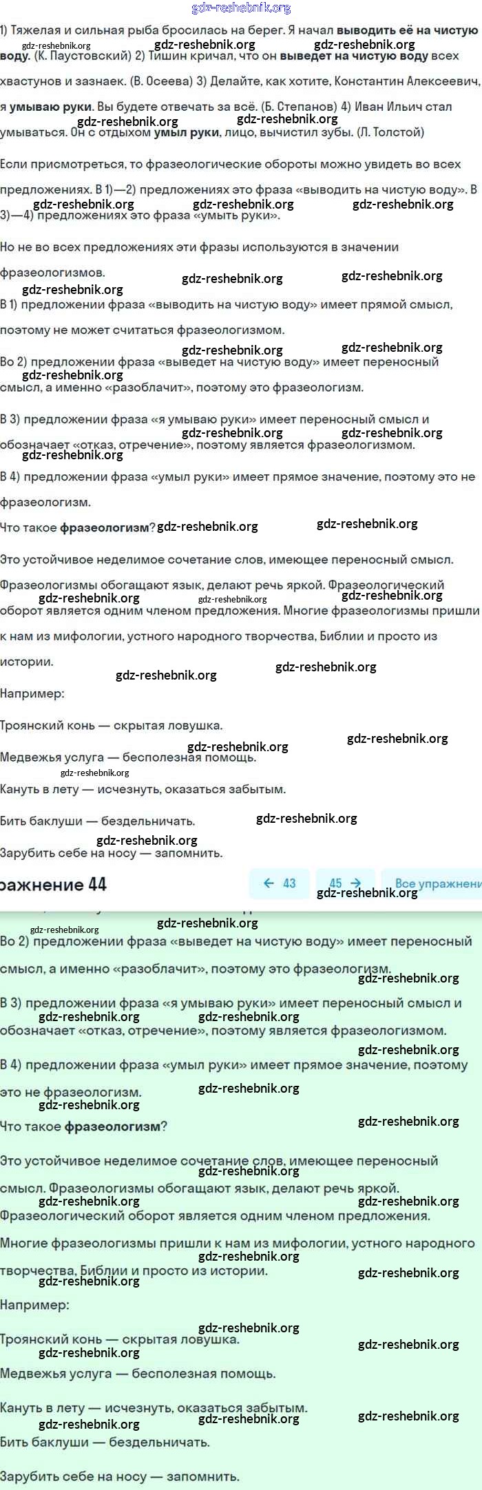 gdz-reshebnik.org - сайт готовых домашних заданий и решебников для школьников по Русскому языку для восьмого класса. Предоставляем готовые ответы на задания, авторские материалы к Учебнику Бархударов, Крючков - Упражнения 44 . Основная часть контента представлена в бесплатном онлайн-формате с удобным и простым интерфейсом.